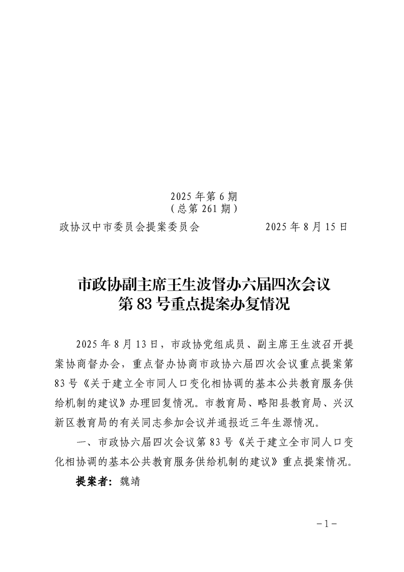提案跟踪(2025年第6期 总第261)