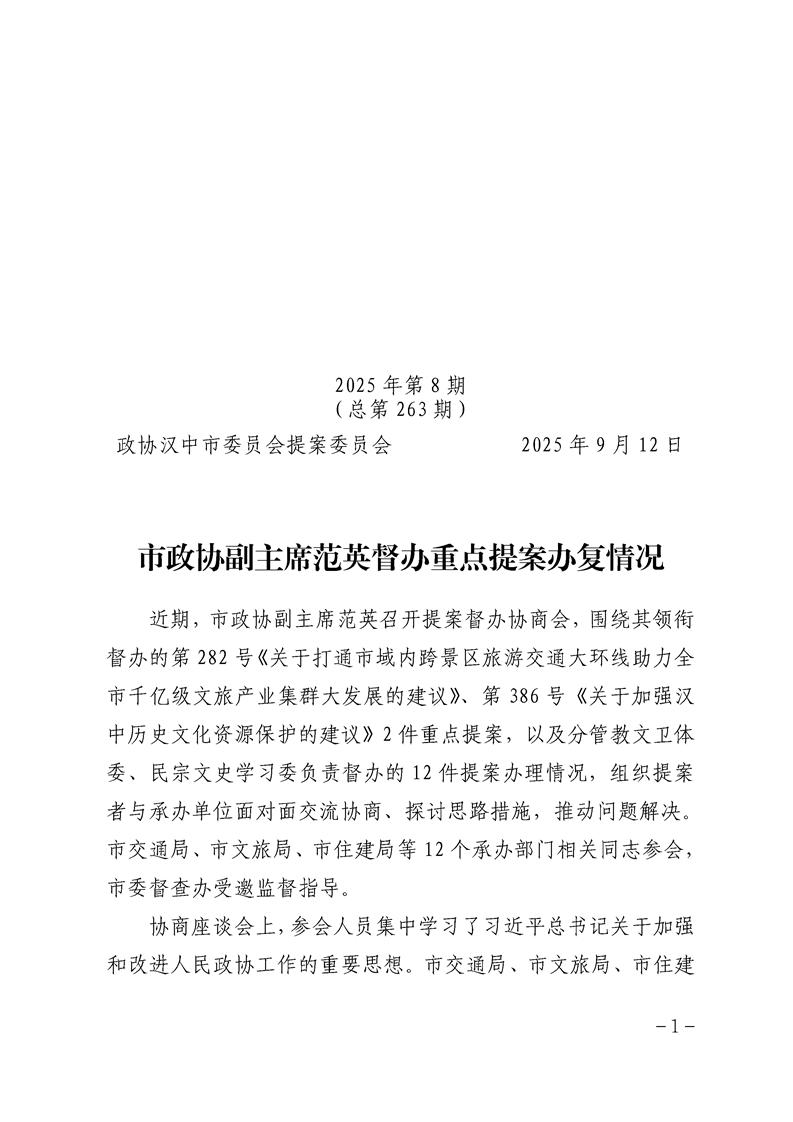 提案跟踪(2025年第8期 总第263)