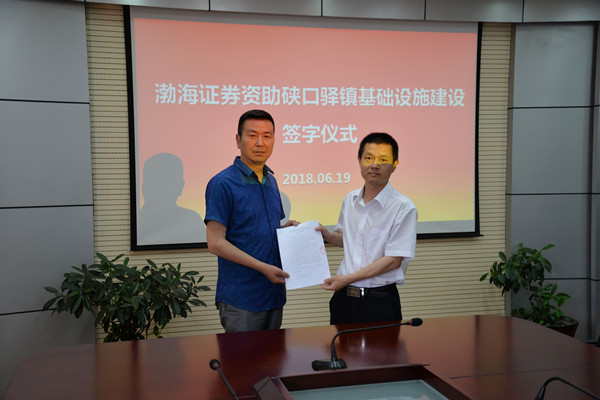 6月19日,渤海证券资助略阳县硖口驿镇基础设施建设签字仪式在县政协三楼会议室举行。县政协副主席穆丽萍出席并讲话。